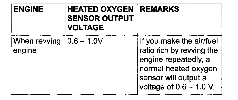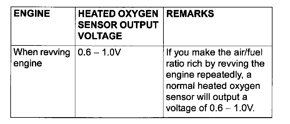 2. While repeatedly revving the engine, measure the heated oxygen sensor output voltage.