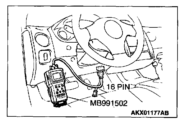 To prevent damage to scan tool MB991502, always turn the ignition switch to the "LOCK" (OFF) position before connecting or disconnecting scan tool MB991502.