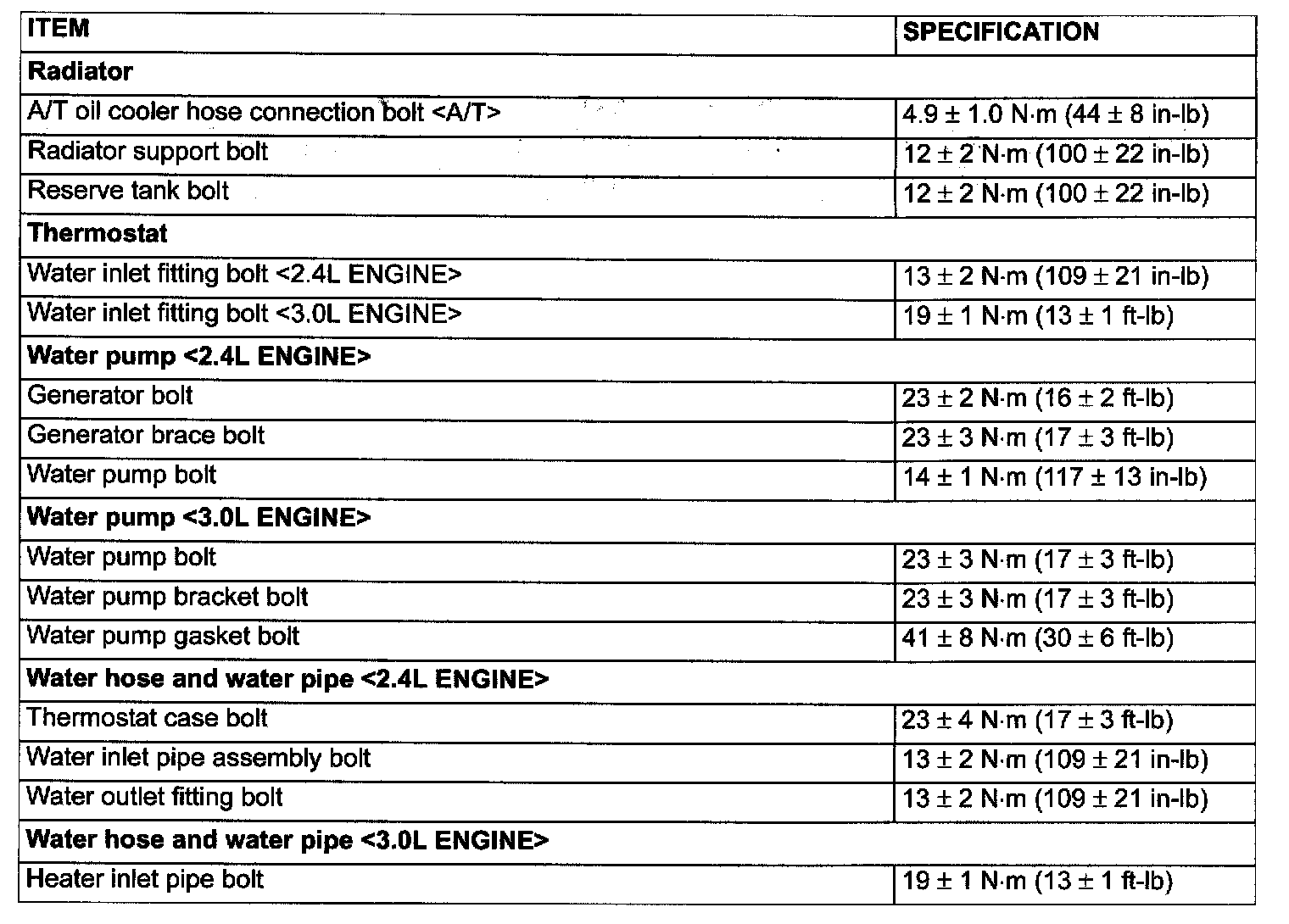 Torque Specifications