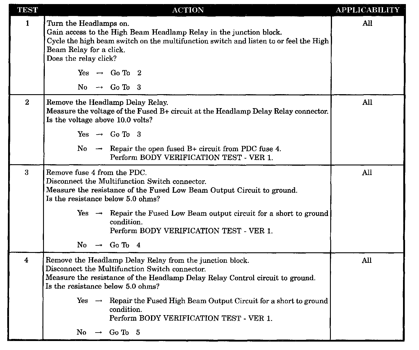 HIGH BEAM HEADLAMPS WILL NOT TURN ON