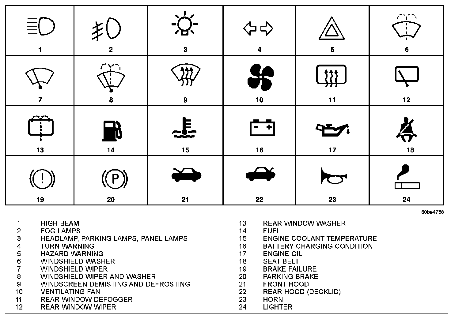 The graphic symbols illustrated in the following International Control and Display Symbols Chart are used to identify various instrument controls. The symbols correspond to the controls and displays that are located on the instrument panel.