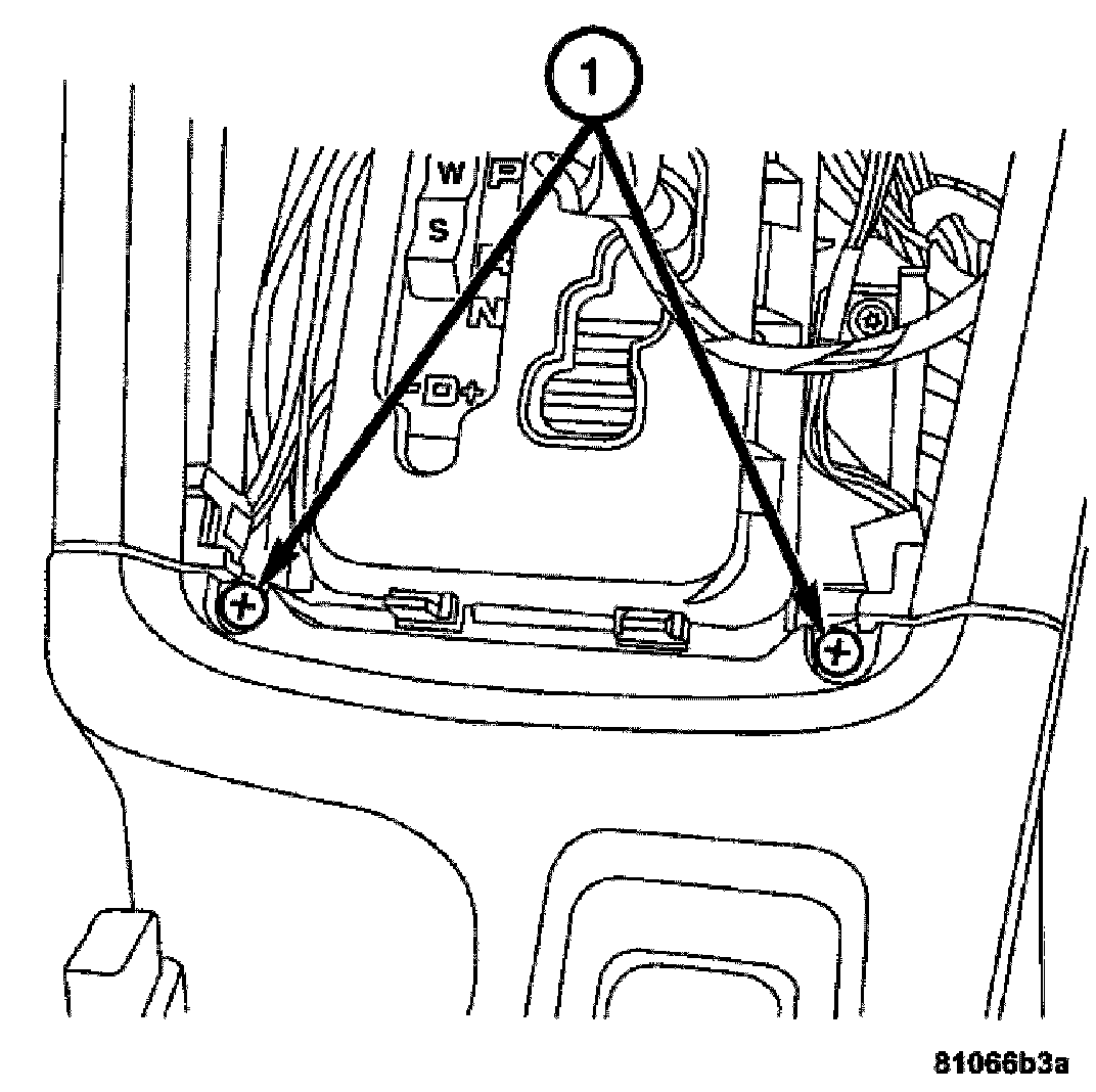 8. Install the screws (1) attaching the front and the rear center consoles.
