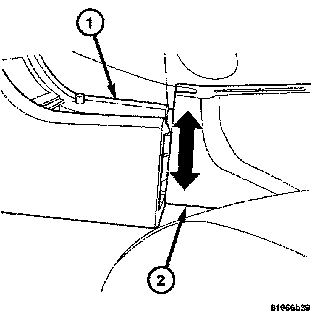 4. Install the rear center console (2) uniformly while moving in at front (1) arresting hook at the separating point.