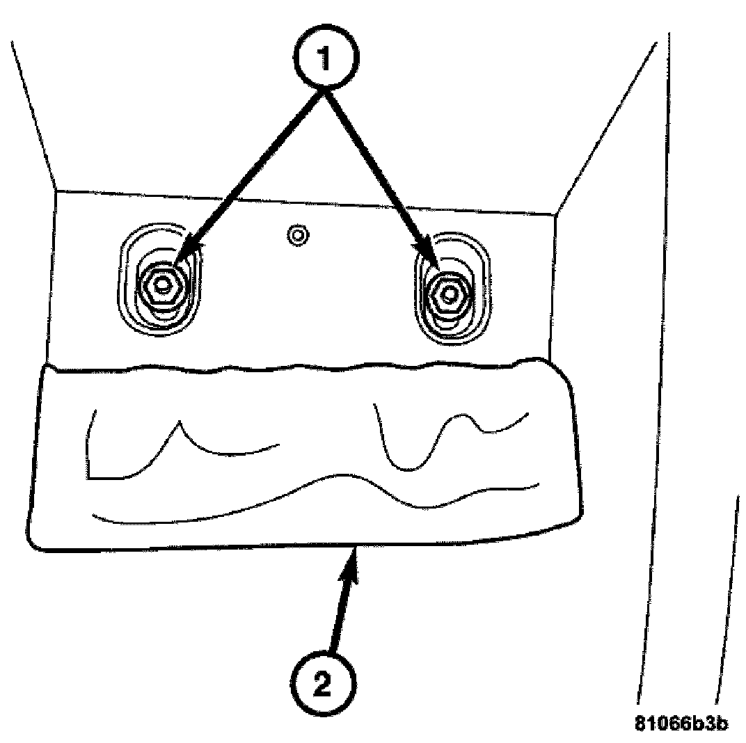5. Lift the carpeting (2) at the rear of the rear stowage compartment.