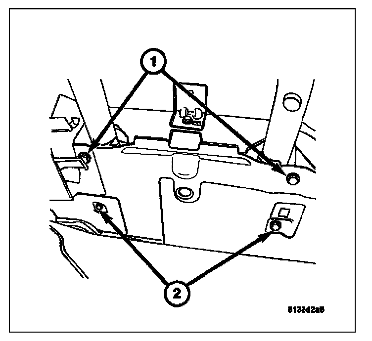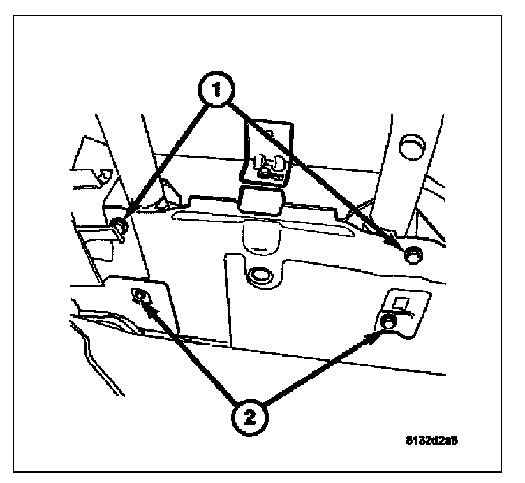 6. Reposition the rear cargo carpet to access the sports bar mounting bolts then remove the sports bar mounting bolts (1, 2).