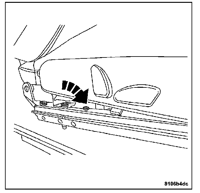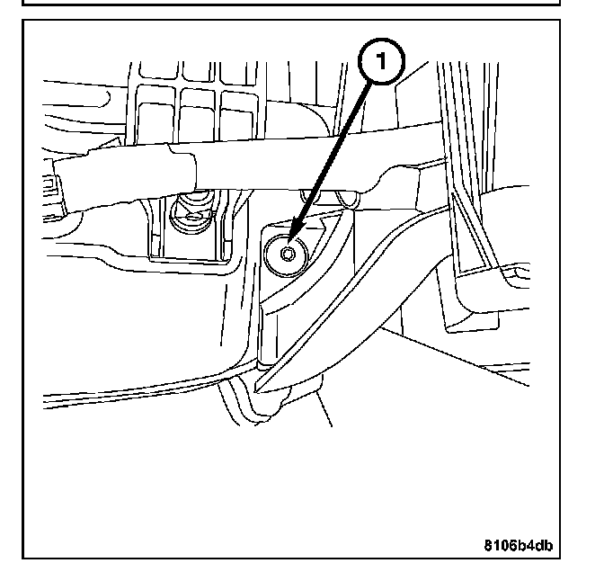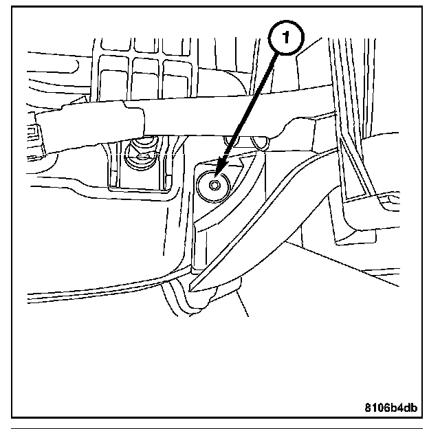 3. Remove the bolt (1) attaching the side panel to the seat base.