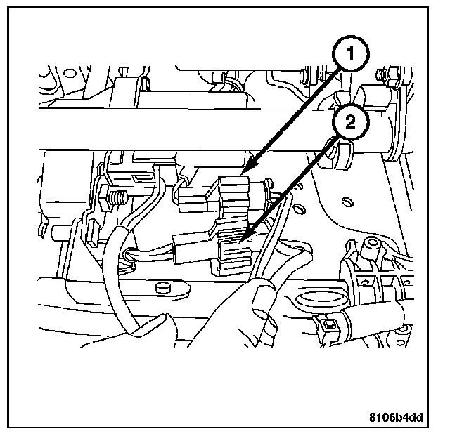 5. Disconnect the power seat switch harness connectors (1) and (2).