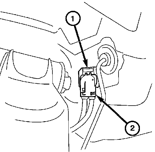 1. Connect the wheel speed sensor/brake wear indicator wire harness connector (2) to the body mount connector (1).