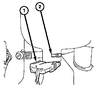 3. Depress the locking tabs and pull the coolant level sensor (2) from the coolant recovery reservoir.