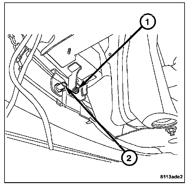 4. Disconnect the ambient air temperature harness connector (2) located next to the front fascia mount (1).