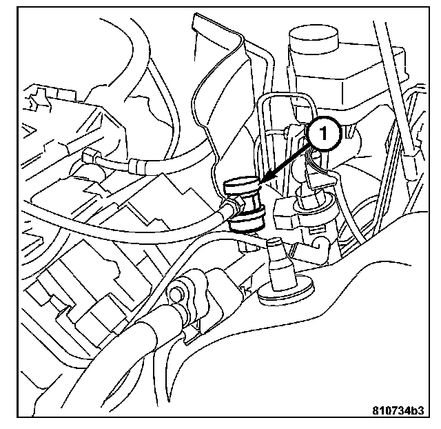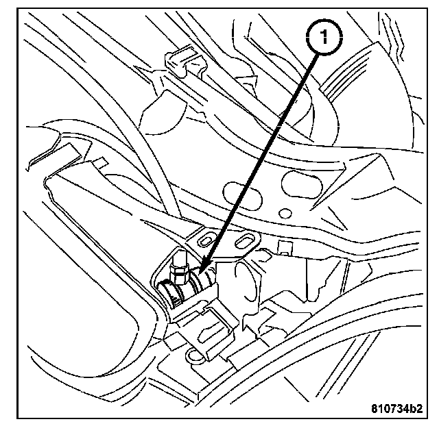 The low pressure service port (1) is located on the suction line on the left side of the engine compartment near the shock mounting.