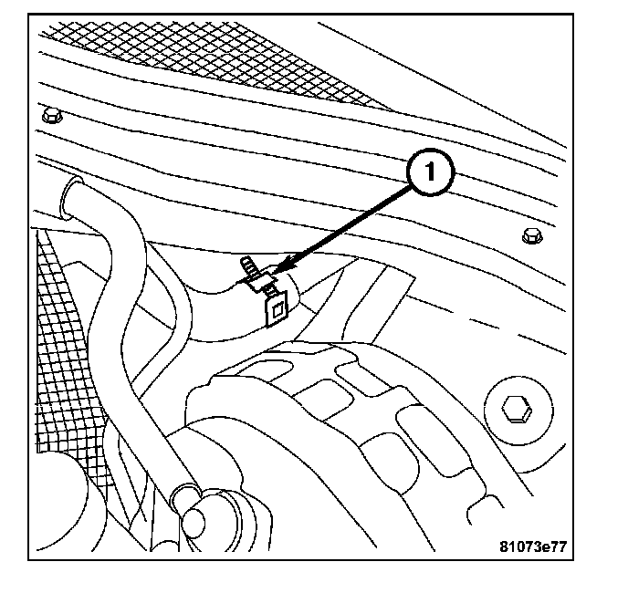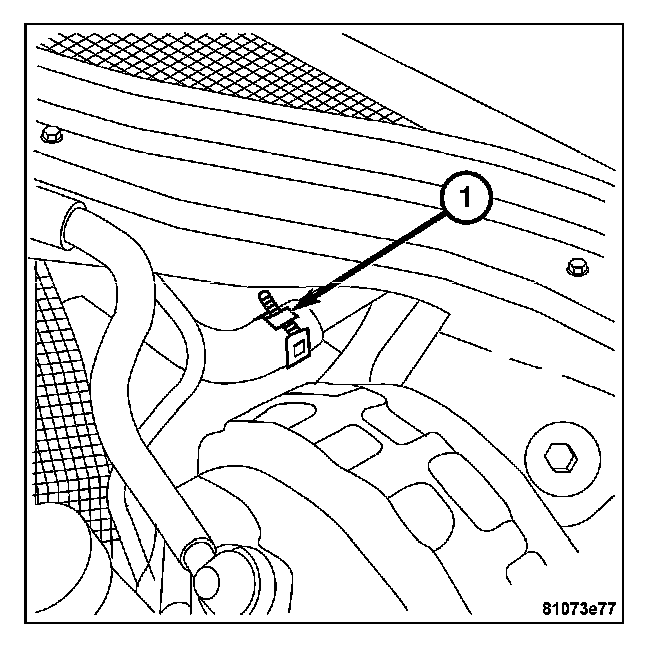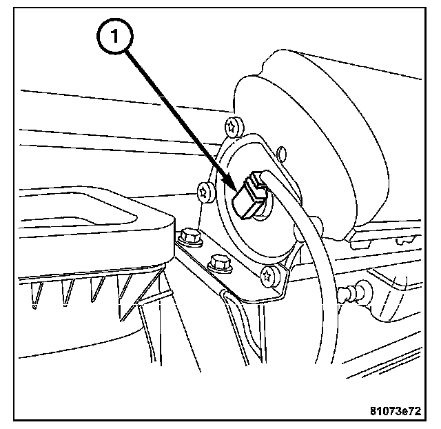 4. Install the harness connector on heater core temperature sensor located on the front of the HVAC housing. Then install the evaporator temperature sensor (1) to the HVAC case.
