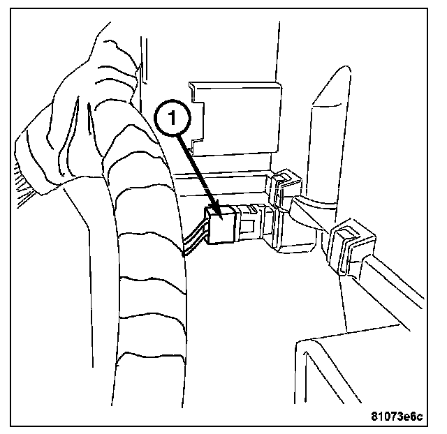 18. Remove the electrical harness connector (1) on passenger airbag module.