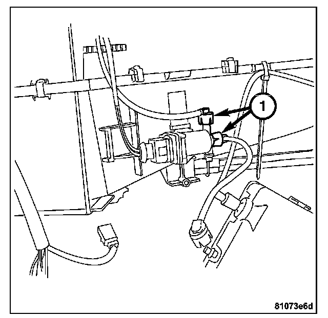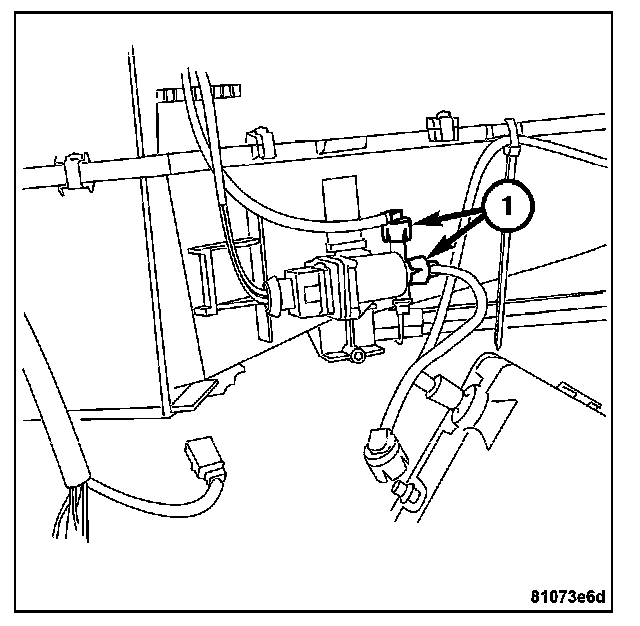 7. Connect the connectors (1) to the vacuum reservoir switch over valve.