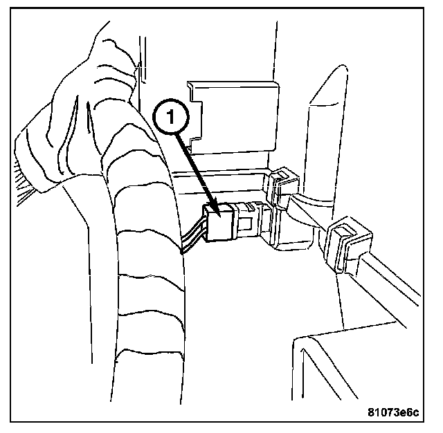 12. Install the harness connector (1) on passenger airbag module.