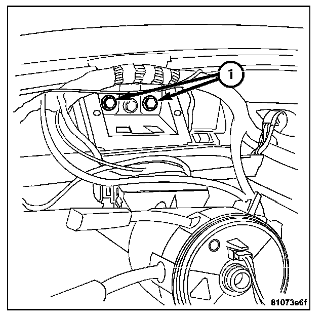 14. Install the bolts and nuts (1) attaching the steering column to the instrument panel support.