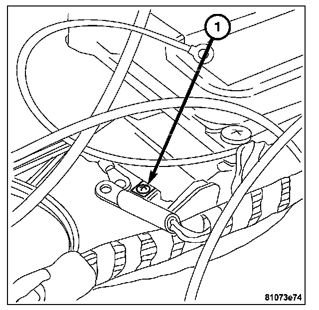 8. Install the bolts (1) attaching the instrument panel support to the front of the vehicle bulkhead.