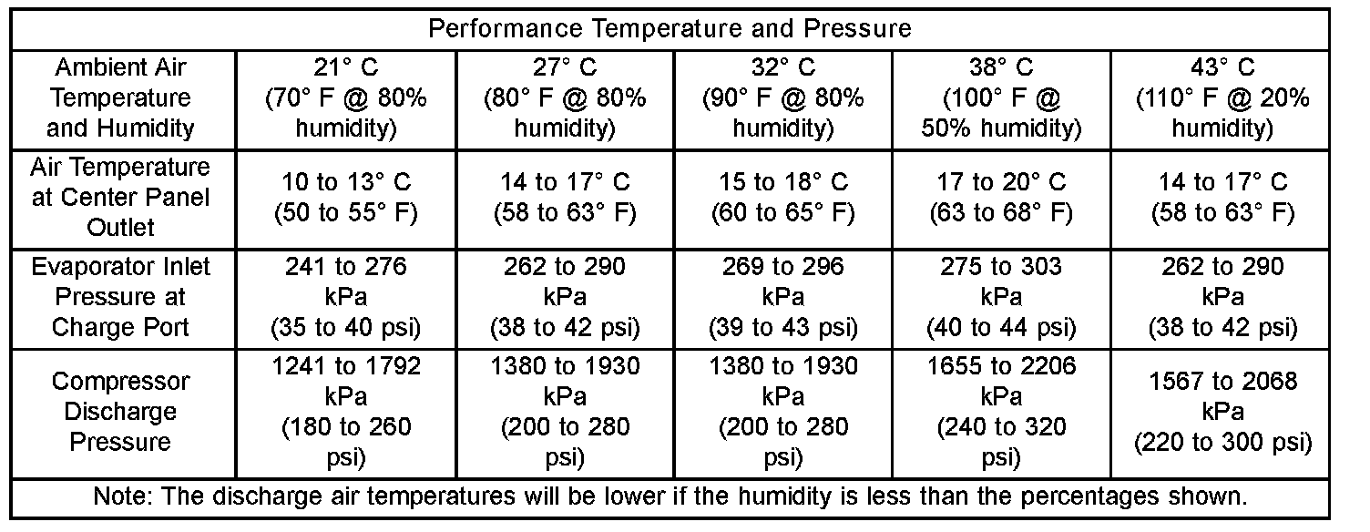 7. With the compressor clutch engaged, record the discharge air temperature and the compressor discharge pressure.