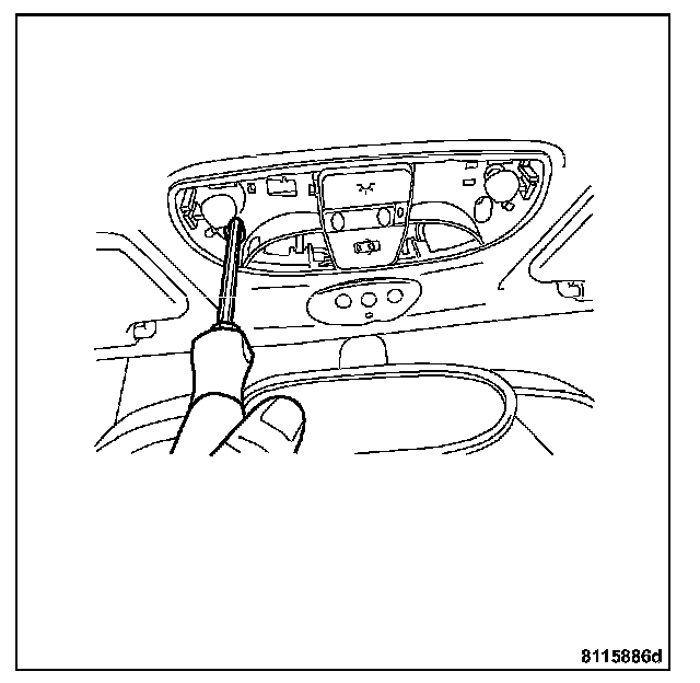 3. Remove the retaining screws and lower the courtesy lamp switch/unit from the headliner opening.