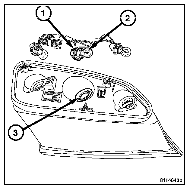 1. Install the bulb (2) into the turn signal lamp socket (1).