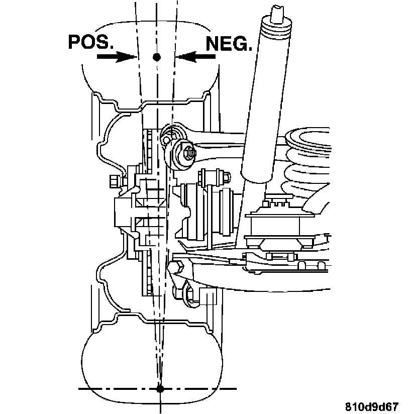 3. Check the rear axle camber. (POS+) = Positive Camber, (NEG-) = Negative Camber. The camber on the rear axle is not adjustable. If a substantial deviations in the rear axle camber are found, the cause may be one of the following: