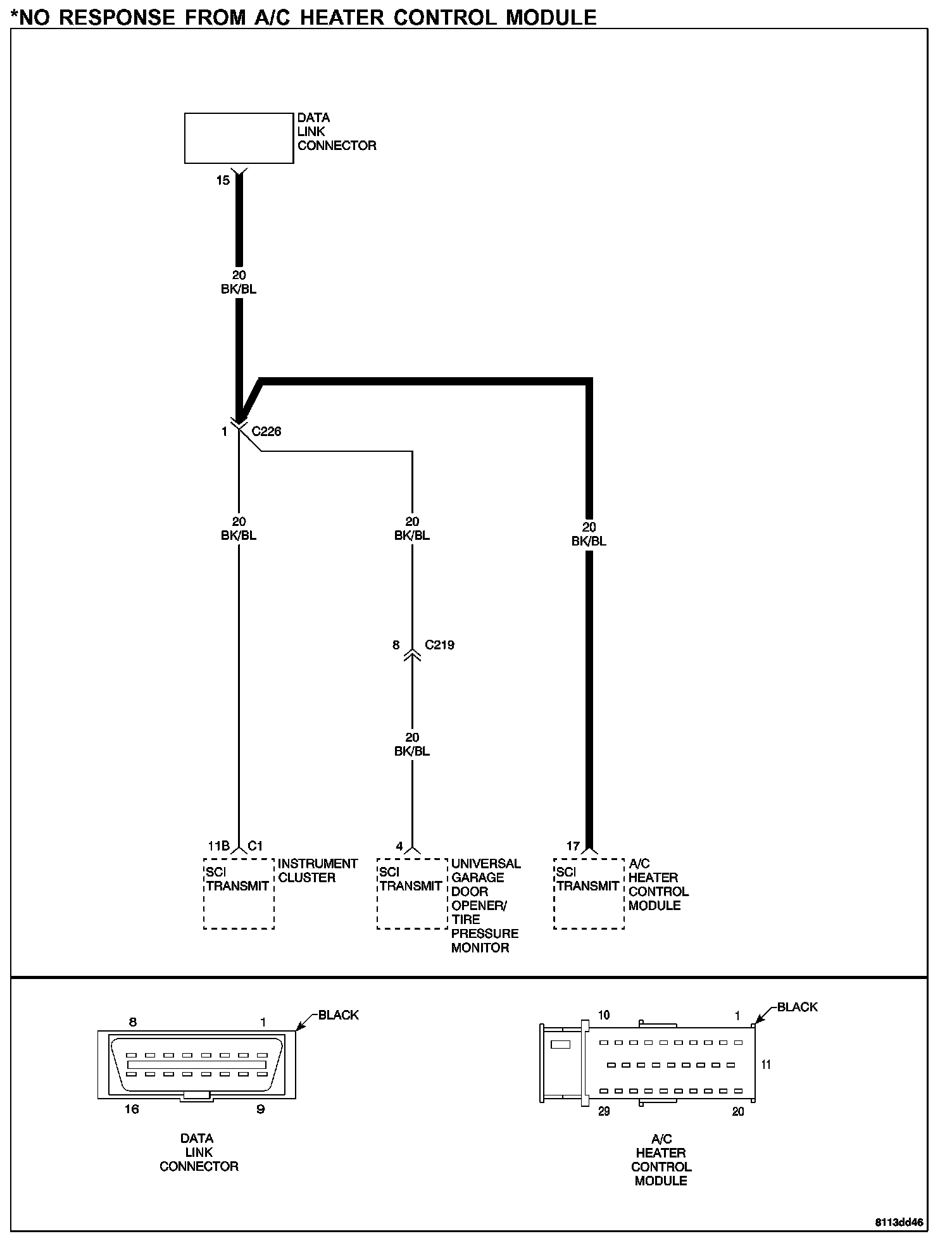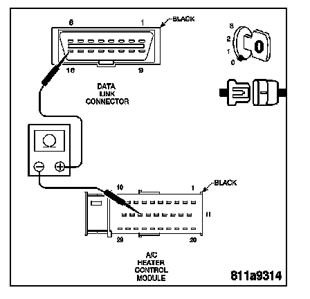 Measure the resistance of the SCI Transmit circuit from the A/C Heater Control Module harness connector to the DLC.