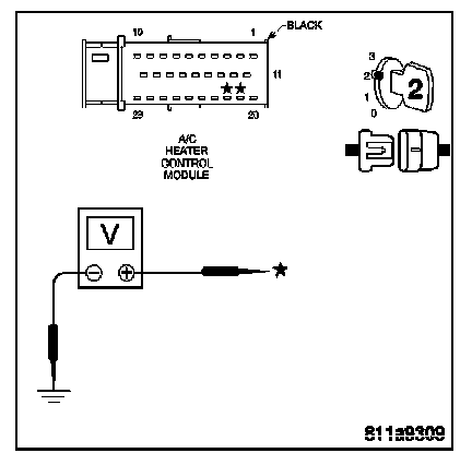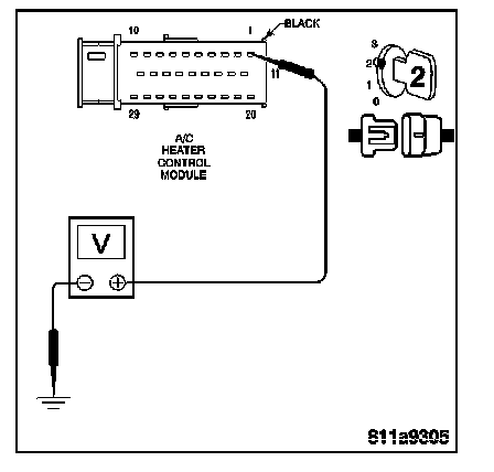 Measure the voltage of the Fused B+ circuit at the A/C Heater Control Module harness connector.