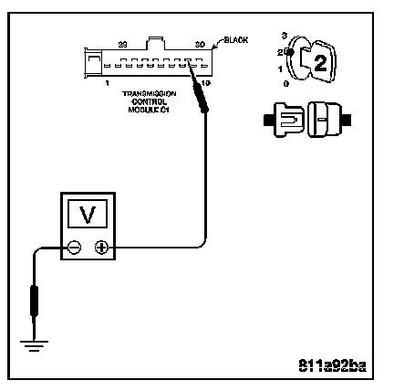Measure the voltage of the Traction System Relay Output circuit at the TCM harness connector.