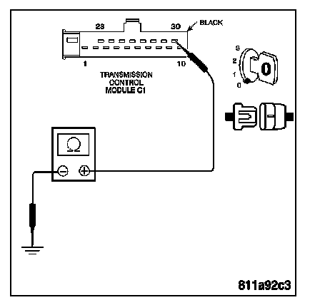 Measure the resistance of the Ground circuit from the TCM harness connector.