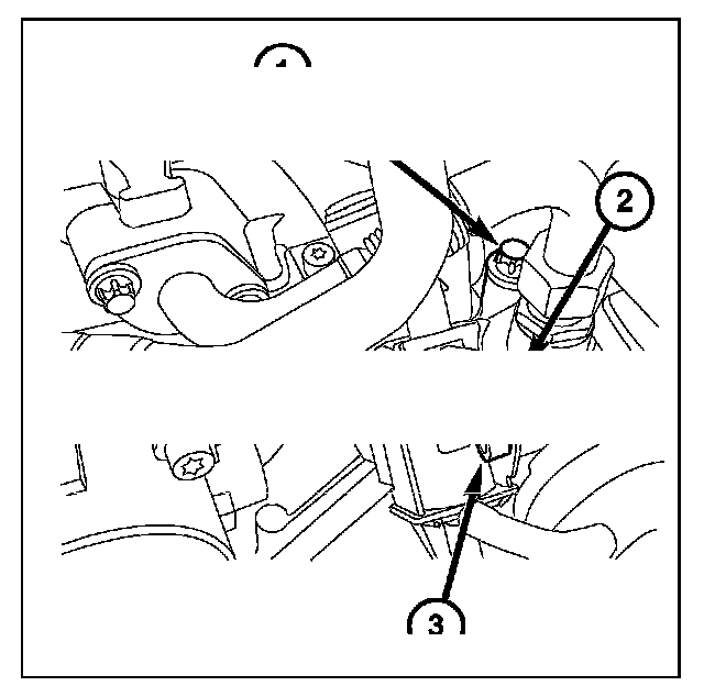 4. Loosely install valve rear bolt (2) to cylinder head, do not tighten bolt.