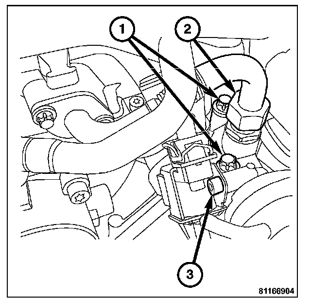 6. Remove the solenoid to valve mounting bolt (3).