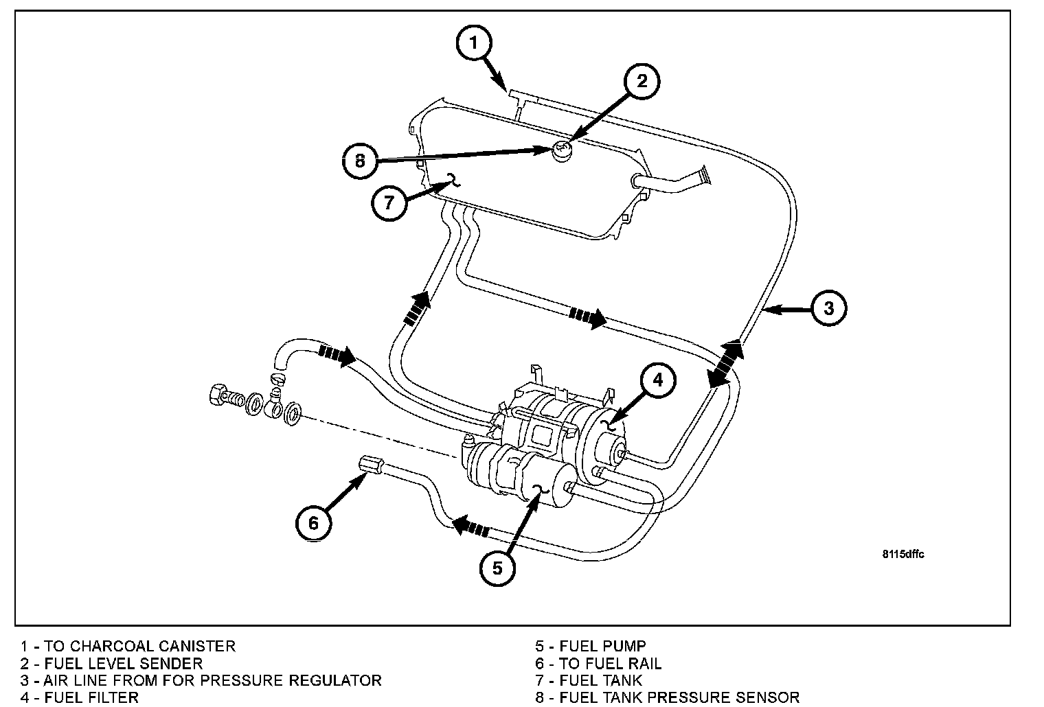 The lines/tubes/hoses used on fuel injected vehicles are of a special construction. This is due to the higher fuel pressures and the possibility of contamination in the fuel system. If it is necessary to replace these lines/tubes/hoses, only those designed for this vehicle may be used.