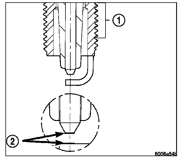 Spark plugs using either a single or double platinum tips have a recommended service life of 100,000 miles for normal driving conditions per schedule A in this manual. The spark plugs have a recommended service life of 75,000 miles for severe driving conditions. A thin platinum pad is welded to both or just the center electrode (2) end(s). Extreme care must be used to prevent spark plug cross threading, mis-gapping and ceramic insulator damage during plug removal and installation.