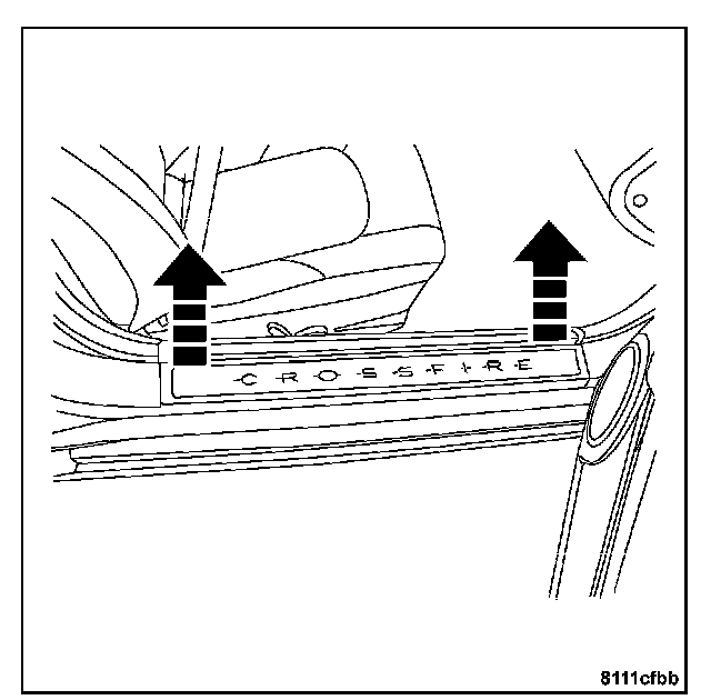 4. Remove the door sill trim plate by pulling straight up on the sill plate to release it from the clips below.