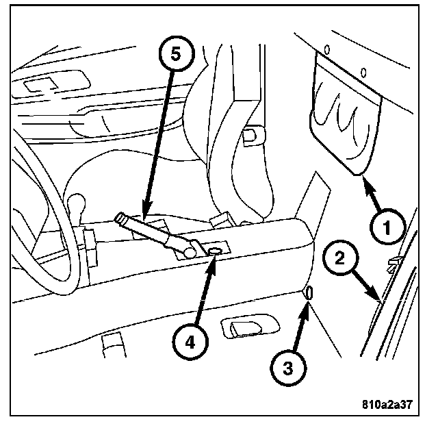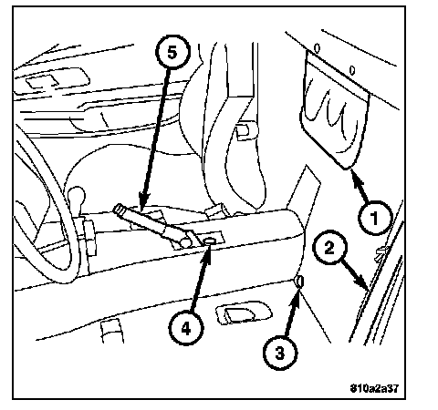 5. Remove the plastic cover (3) on the front of the seat track. Then remove the front seat bolts (2).