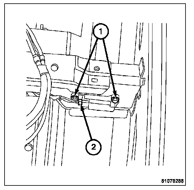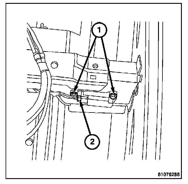 11. Remove the screws (1) attaching the side impact sensor to the body rail.