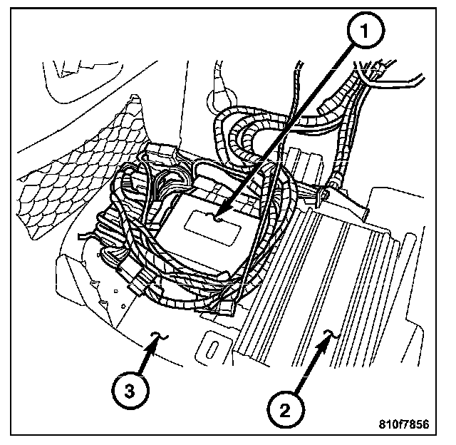 The Transmission Control Module (1) is located in the interior passenger compartment on the passenger side. It is mounted behind a base plate (3) in the passenger side footwell next to the Radio Amplifier (2). The carpet must be pulled pack and the base plate unfastened and flipped down in order to access the Transmission Control Module.
