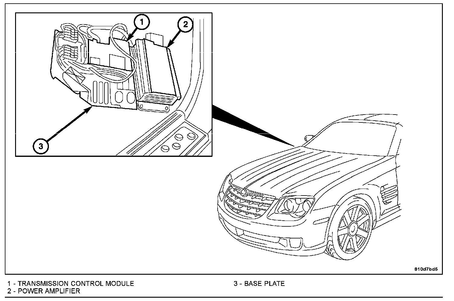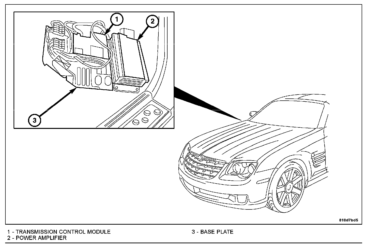 5. Disconnect the electrical connectors and remove the transmission control module (1).