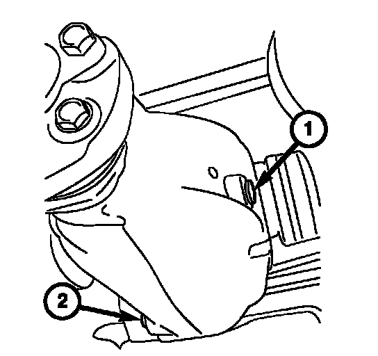 7. Install the differential housing drain plug (2). Tighten the drain plug to 50 Nm (37 ft. lbs.).