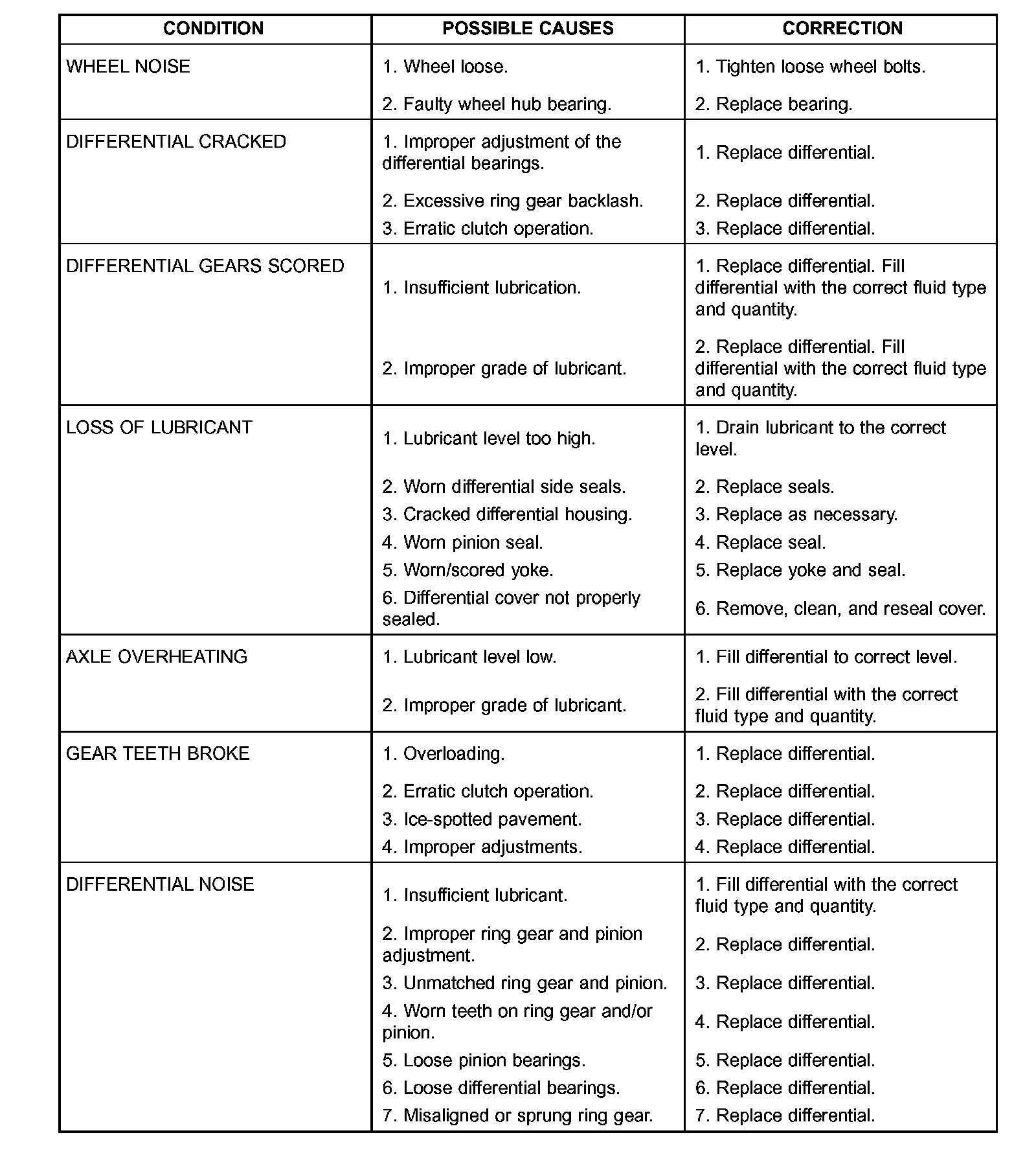 REAR DIFFERENTIALDIAGNOSTIC CHART