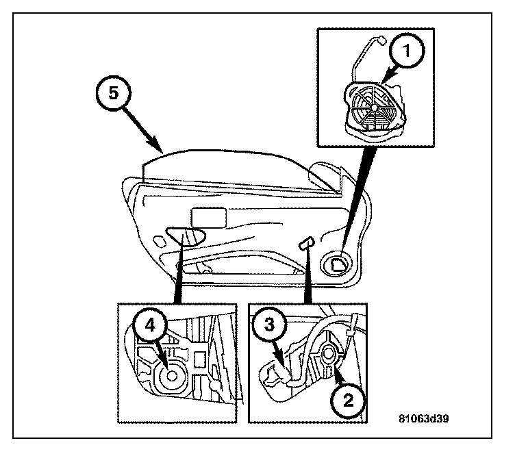 5. Install the door speaker (1). Tighten to 4 N.m (35 in.lbs.).