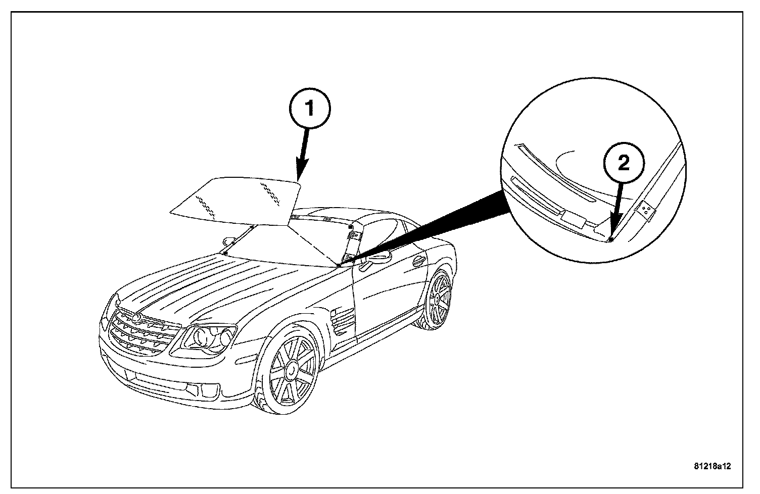 6. Clean inside of windshield (1) with Mopar Glass Cleaner and lint-free cloth.