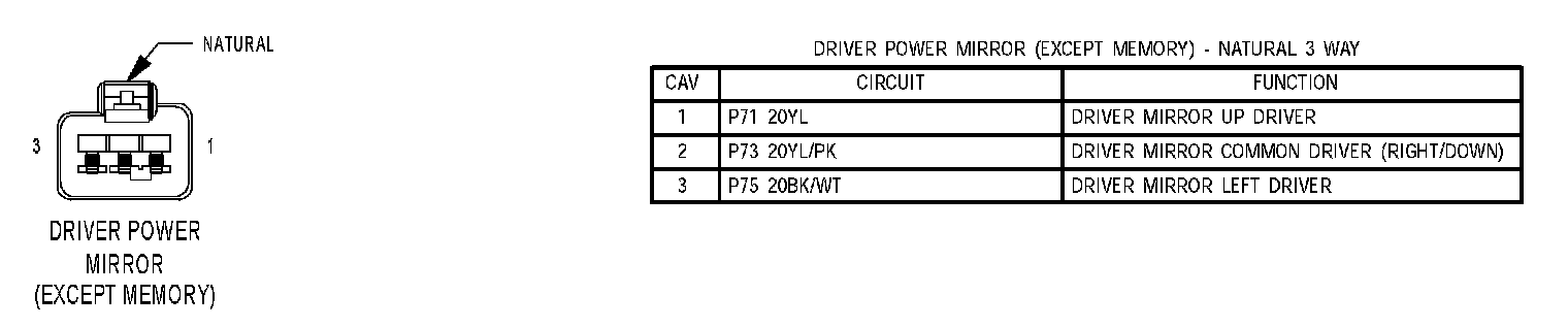 Driver Power Mirror (Except Memory):