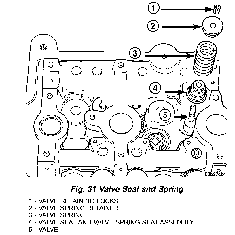 4. Position valve springs and retainer on spring seat (Fig. 31).
