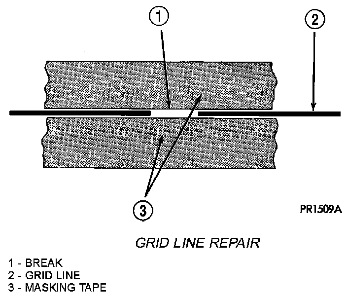 4. For grid line repair, mark off the area to be repaired with masking tape or a template.