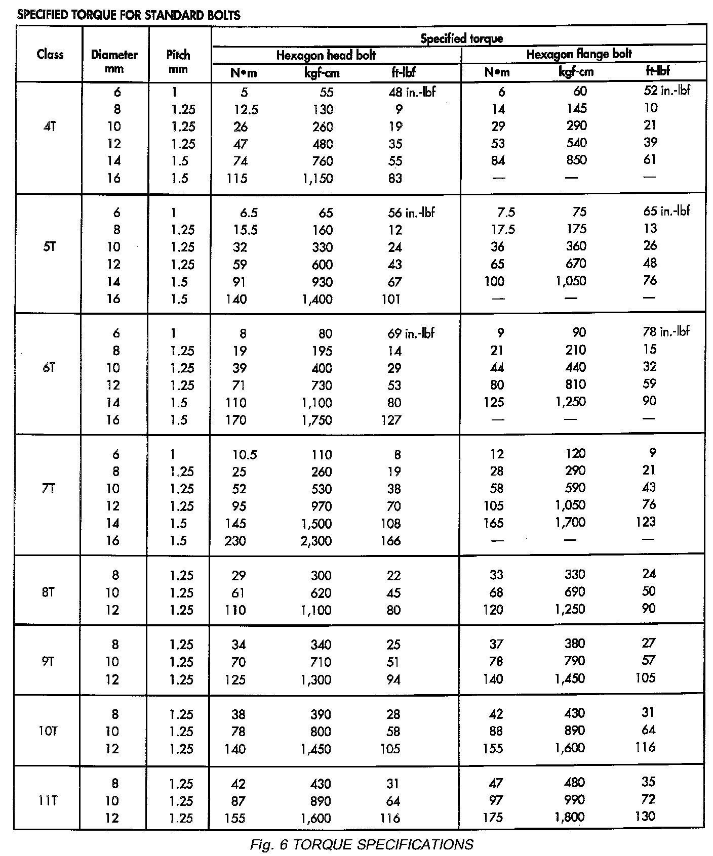 Individual Torque Charts appear within many or the Groups. Refer to the Standard Torque Specifications Chart for torque references not listed in the individual torque charts.