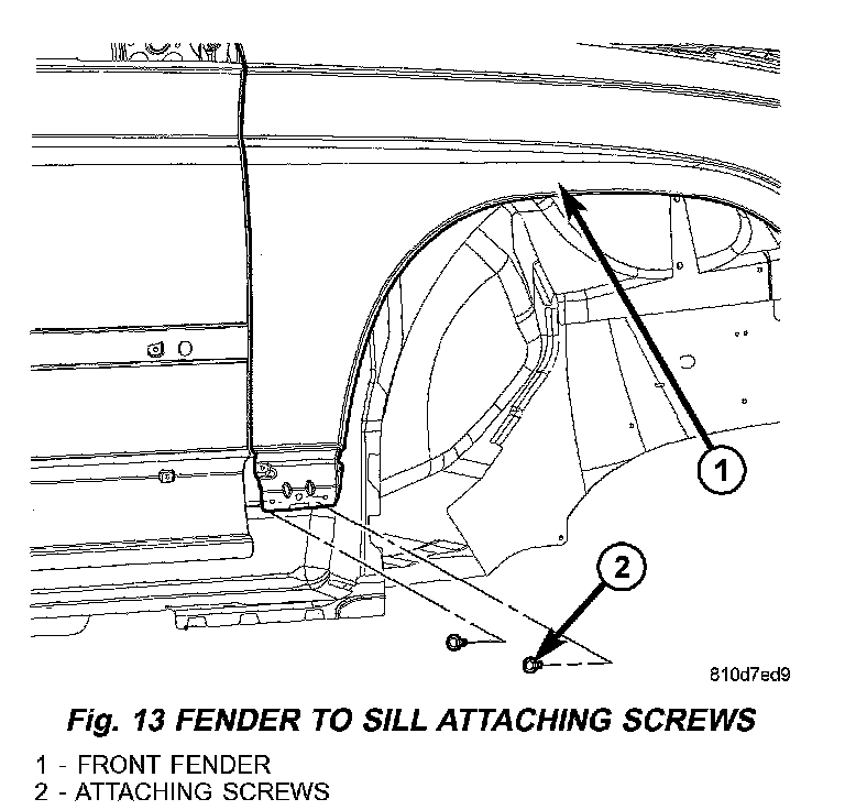 5. Remove fender screws to lower sill panel (Fig. 13).