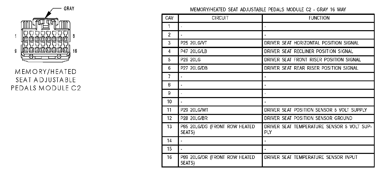 Memory/Heated Seat Adjustable Pedals Module C2: