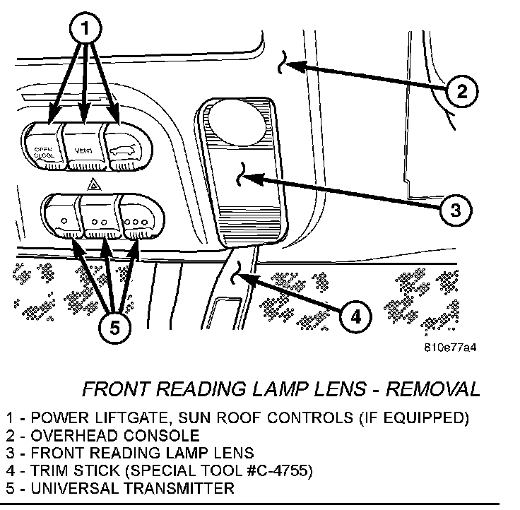 Front Reading Lamp Lens -removal: