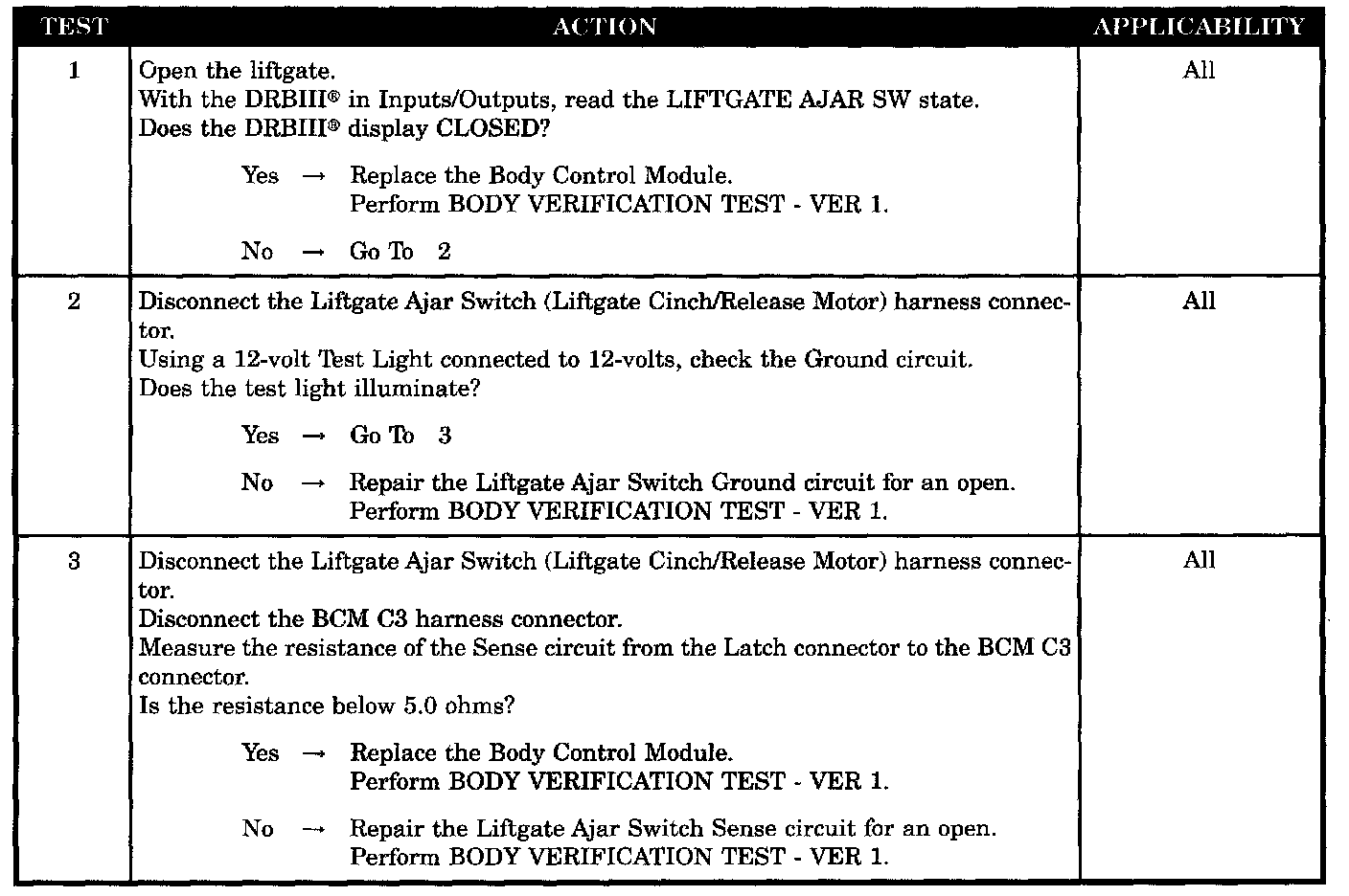 LIFTGATE AJAR CIRCUIT OPEN